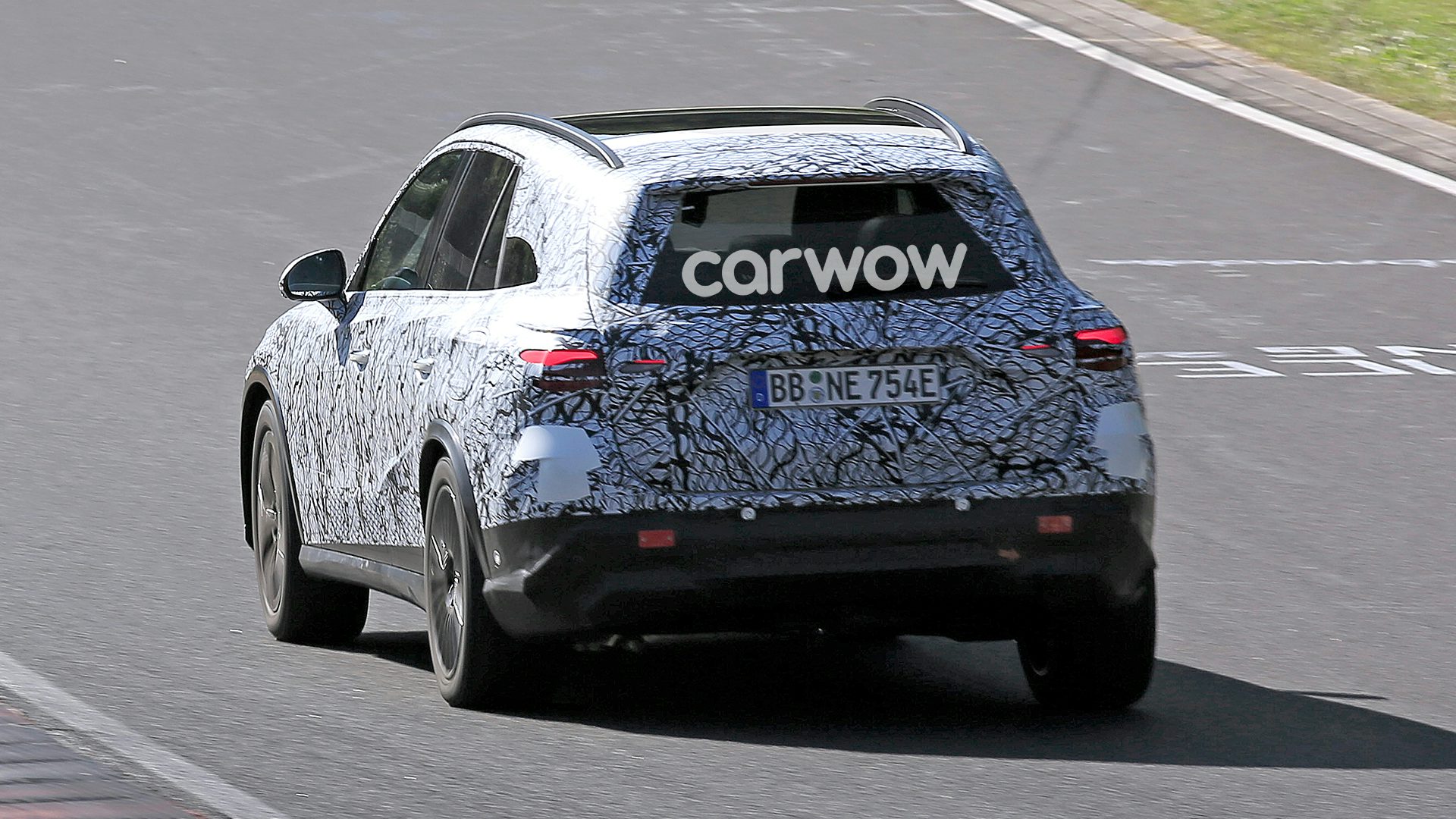 Una differenza più evidente sono gli archi posteriori più muscolosi della nuova GLC. Il tetto sembra essere più alto e piatto di prima, con il lunotto più verticale e lo sbalzo posteriore più lungo, il che suggerisce che ci sarà più spazio per i passeggeri dei sedili posteriori e un bagagliaio più grande.