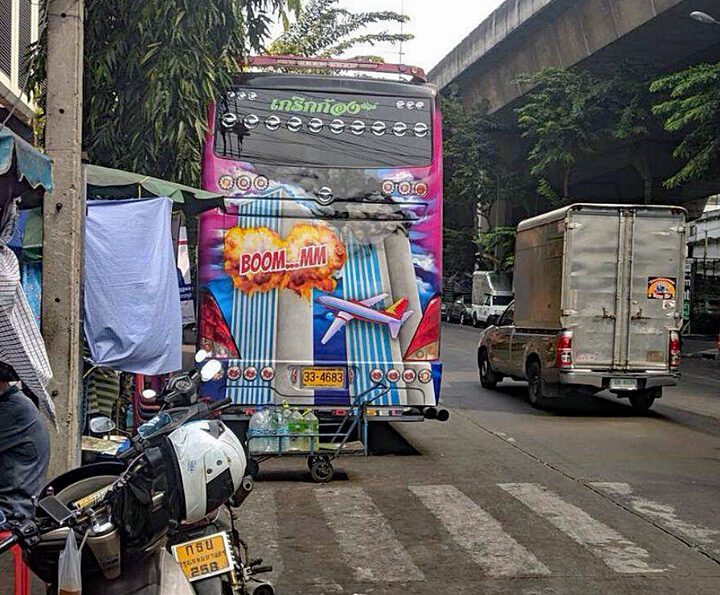 Il proprietario o il pittore non sanno affatto cosa è stato dipinto, tanto meno quali sono state le conseguenze, o deve avere una brutta sensazione per gli americani. Pazzi per scappare e come fanno gli automobilisti che lo seguono a vederlo ??? Il testo non è in tailandese, verrebbe firmato da una stampa?