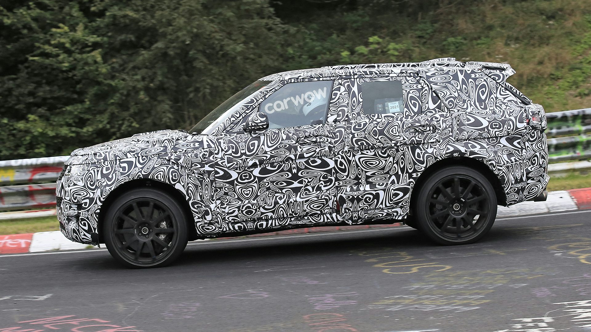 Ciò che suggerisce che questo sia un SVR sono i ritagli di aspirazione più aggressivi nella mimetica che copre il paraurti anteriore, insieme a una serie di enormi cerchi in lega avvolti in pneumatici spessi.