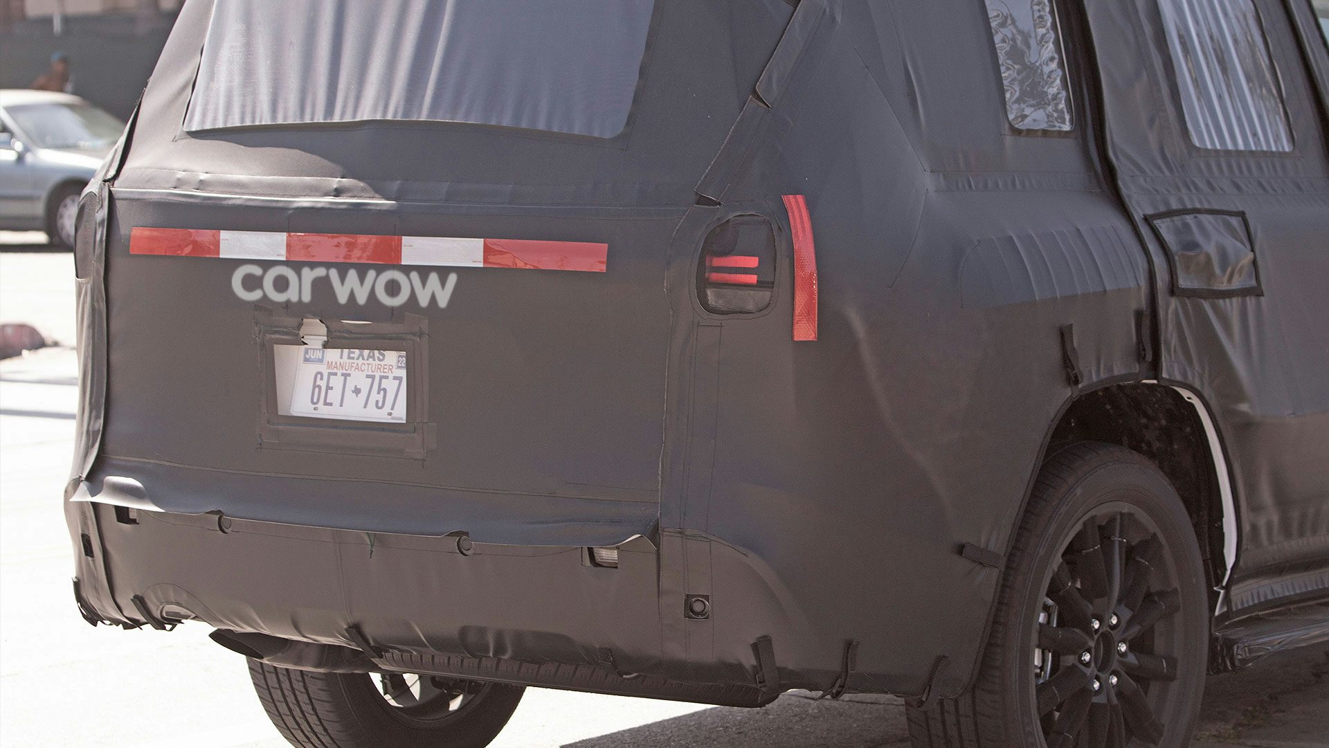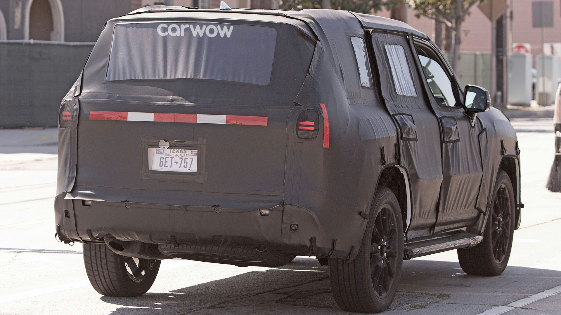 L’altezza di marcia rialzata e la ruota di scorta a grandezza naturale che spunta da sotto il paraurti posteriore indicano che questo sarà ancora una volta un SUV di lusso progettato per il vero fuoristrada.