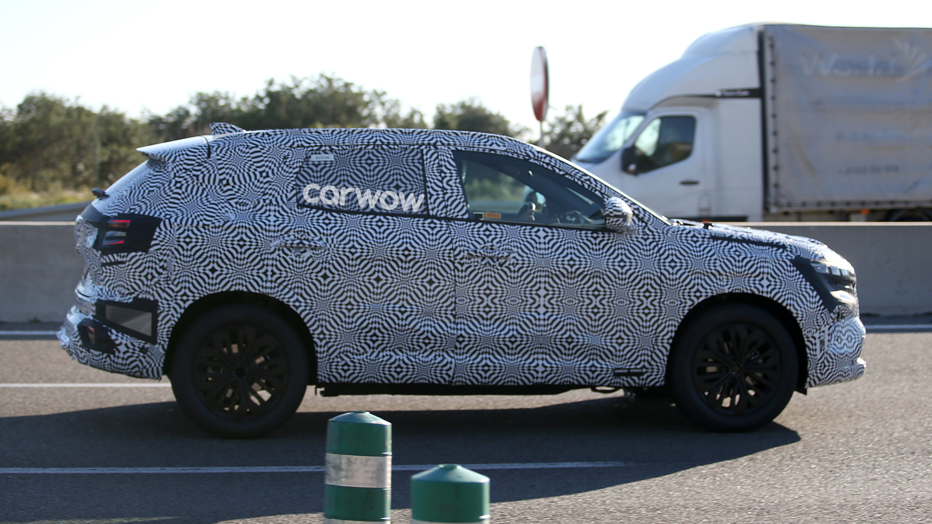 Questo prototipo della nuova Renault Austral è ben nascosto, ma si può ancora dire che ha un profilo più sportivo dell’attuale Renault Kadjar.