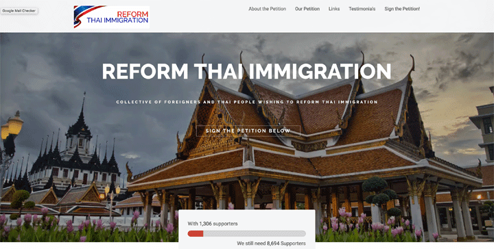 Un gruppo di espatriati americani ha lanciato una petizione su Internet per la riforma dell'immigrazione. Soprattutto l'uso del modulo TM30 è una spina nel fianco degli iniziatori.