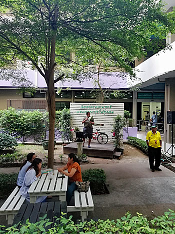 Ora è un formicaio nella sala d'aspetto, con tutti i tipi di "formiche", su sedia a rotelle, con stampelle, accompagnato da un figlio, una figlia o una madre. Le dimissioni con cui ha luogo l'intero processo di attesa sono notevoli. Nessuna spinta o commento forte. Il parcheggio è un vero disastro, anche perché il parcheggio sul retro è sott'acqua. Si narra che il precedente direttore dell'ospedale abbia speso i 10 milioni di baht disponibili per "altre questioni". I problemi peggiori potrebbero essere stati risolti quando il parcheggio in costruzione è pronto.