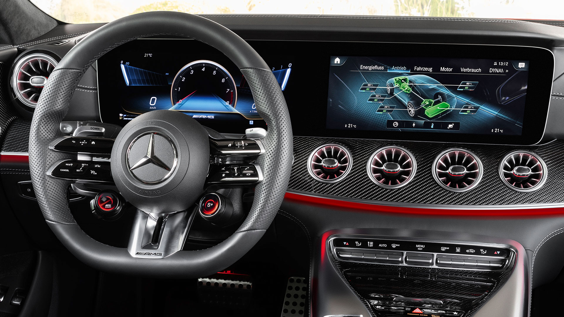 La nuova AMG GT ibrida a 4 porte è dotata di serie di freni carboceramici, con pinze a 6 pistoncini nella parte anteriore e pinze a un pistoncino nella parte posteriore. Può anche utilizzare il suo motore elettrico come generatore per aiutare a rallentare l’auto e ricaricare le batterie allo stesso tempo attraverso la frenata rigenerativa.